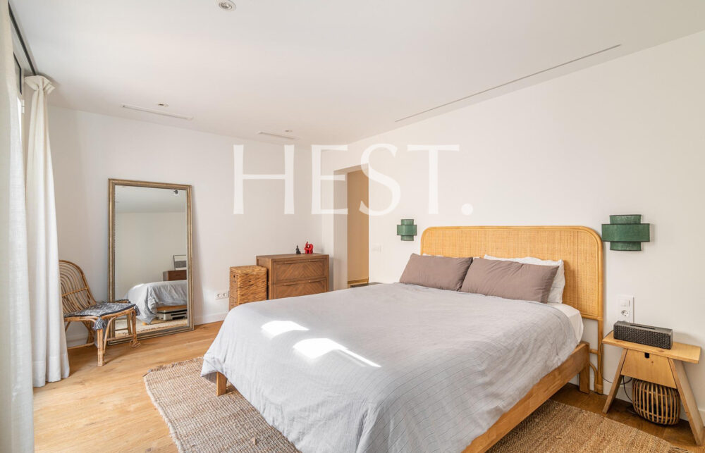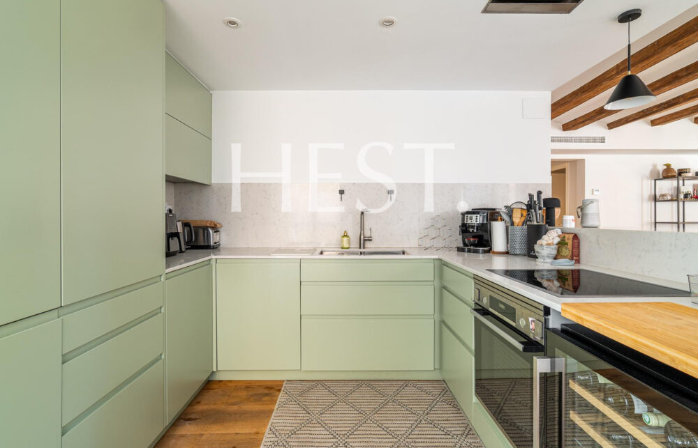 With a total surface of 172 m², the residence captivates with its high ceilings, original wooden beams, and a spectacular 41 m² private terrace, conceived as a true urban oasis where outdoor living can be enjoyed in the heart of the city.