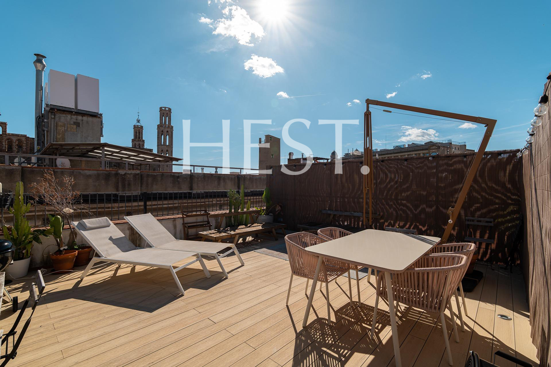 This extraordinary penthouse blends architectural character, refined design, and exceptional outdoor living, set on one of the most sought-after streets in Barcelona’s Gothic Quarter.