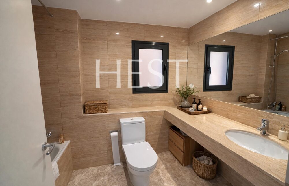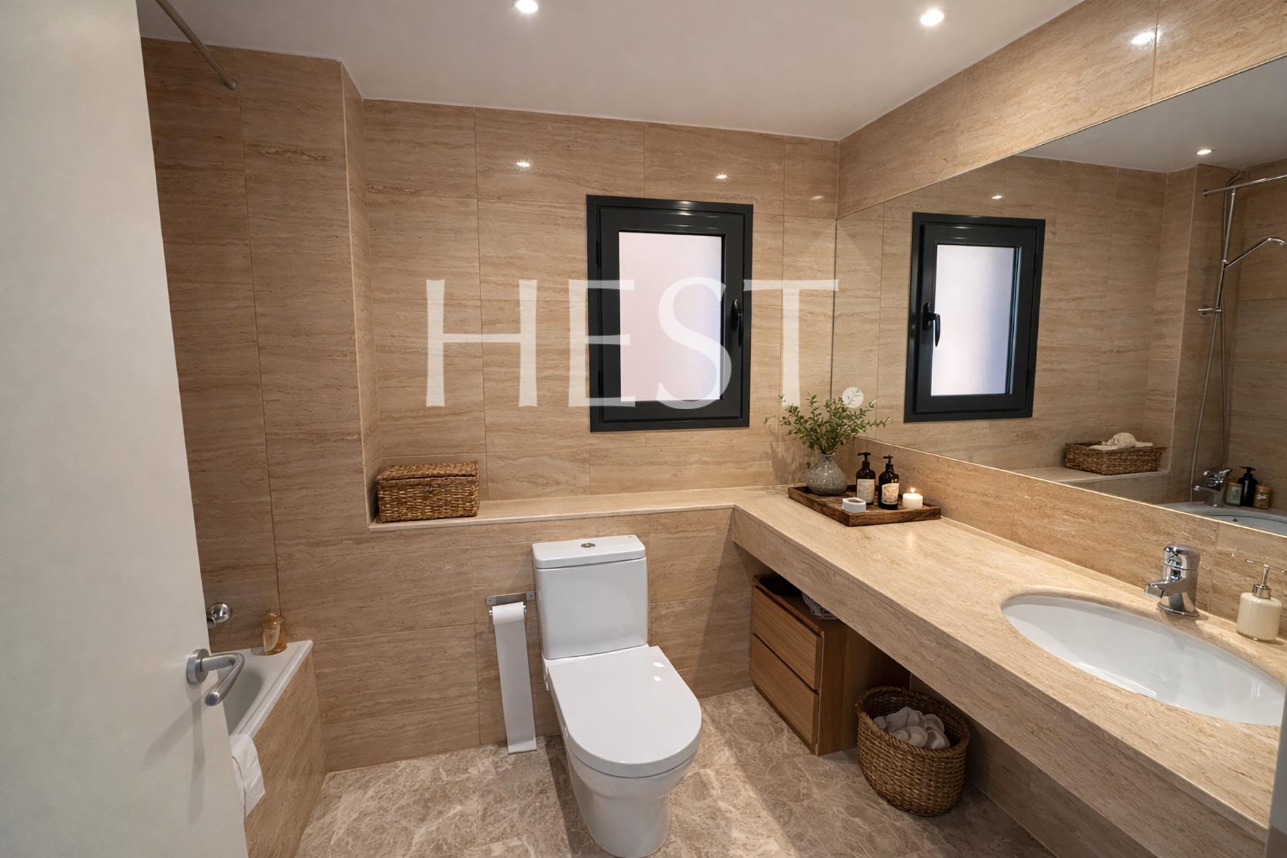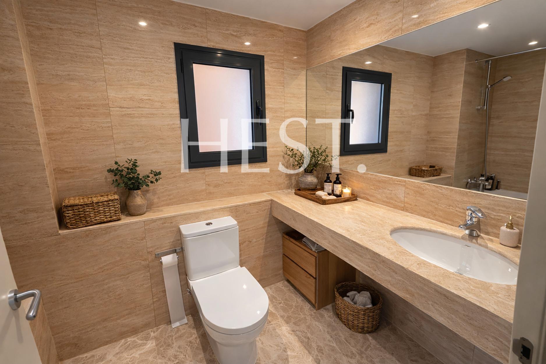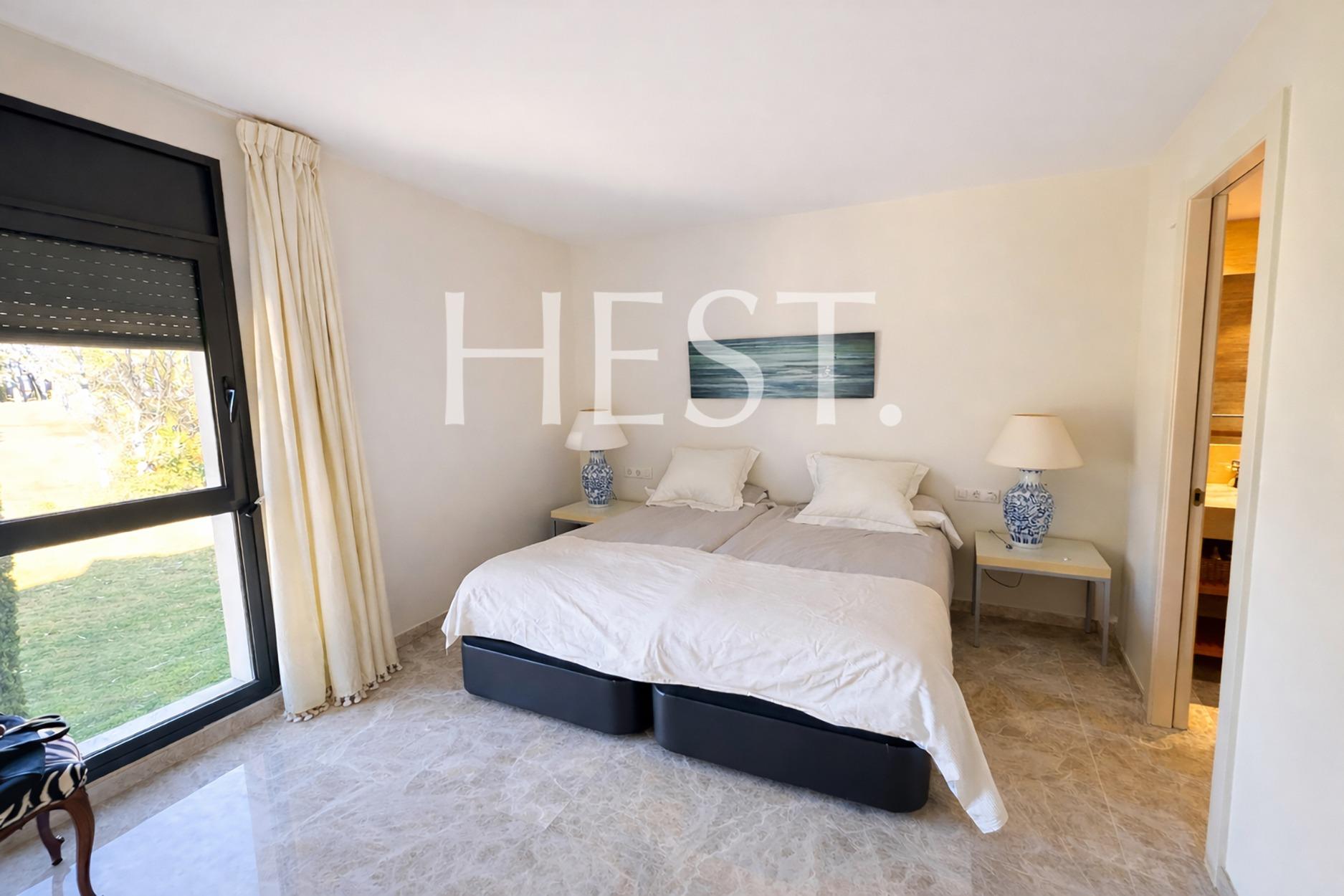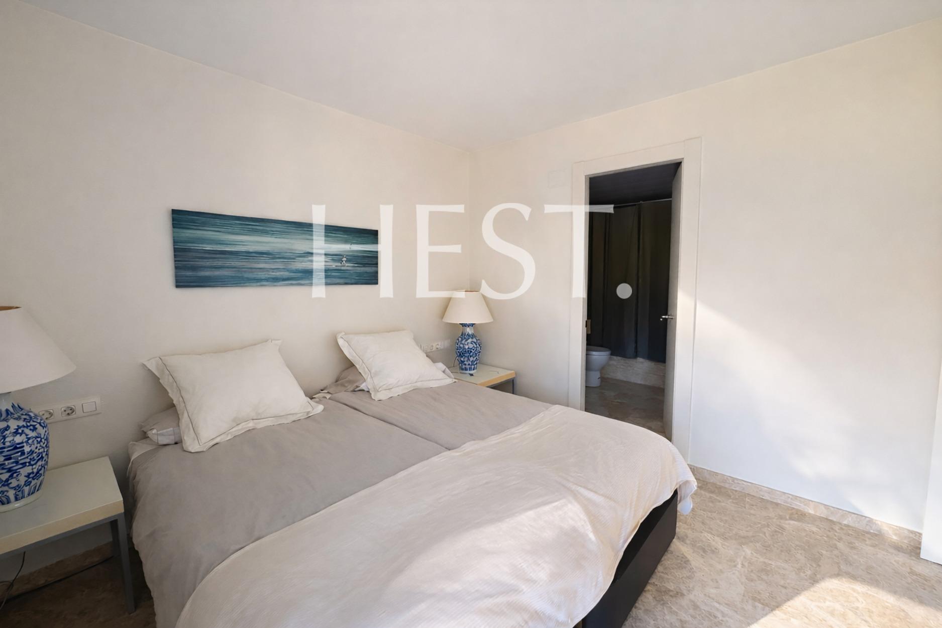The night area is completed by a second exterior en-suite bedroom with a private bathroom, a double bedroom, and a single bedroom sharing a full bathroom. All bedrooms are exterior, benefit from abundant natural light, and include built-in wardrobes.