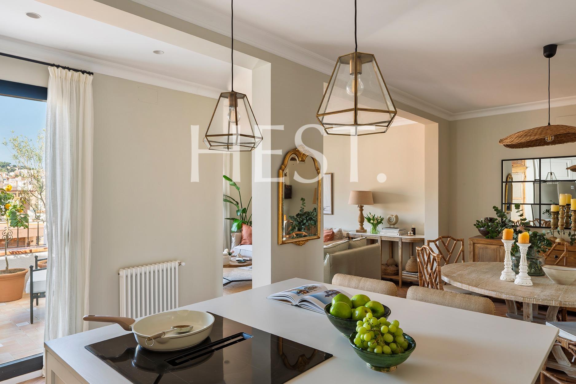 En el prestigioso barrio de Sant Gervasi, en la calle General Mitre, se encuentra este espectacular ático completamente reformado con un gusto exquisito y materiales de alta calidad. Una vivienda lista para entrar a vivir, totalmente exterior y bañada de luz natural durante todo el día.