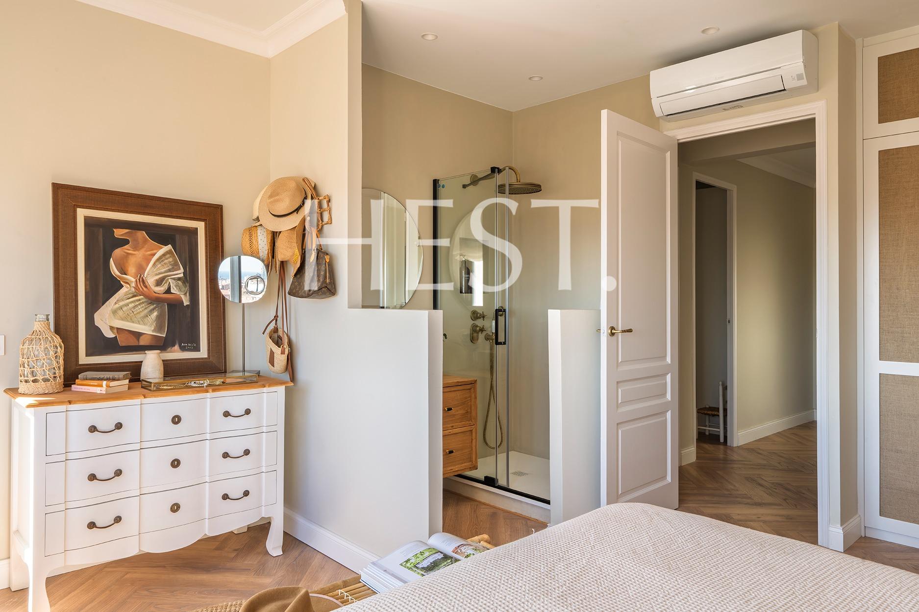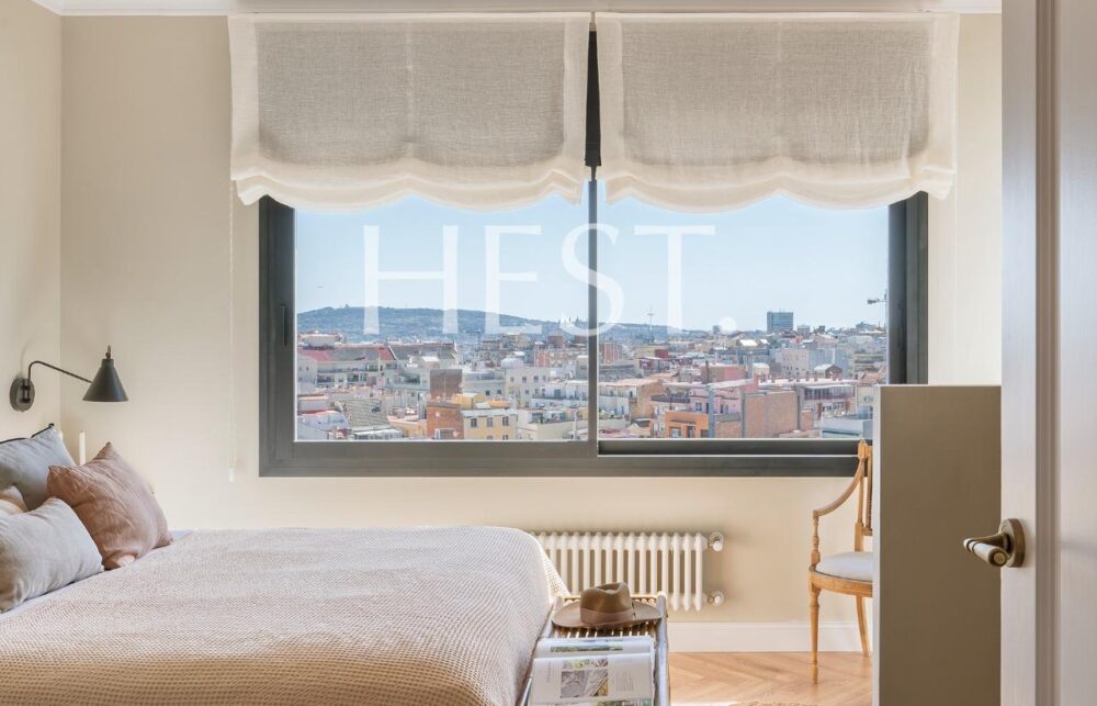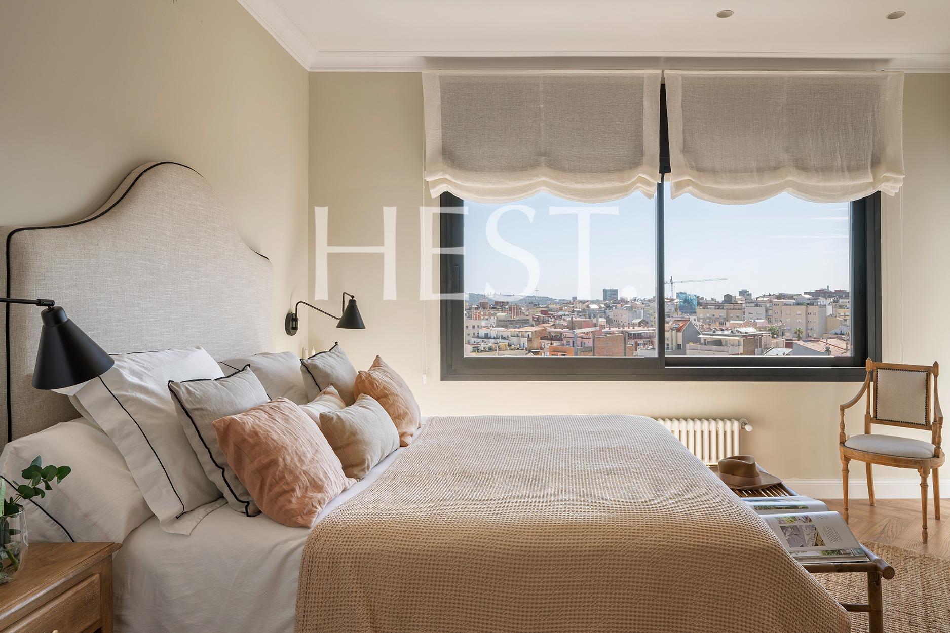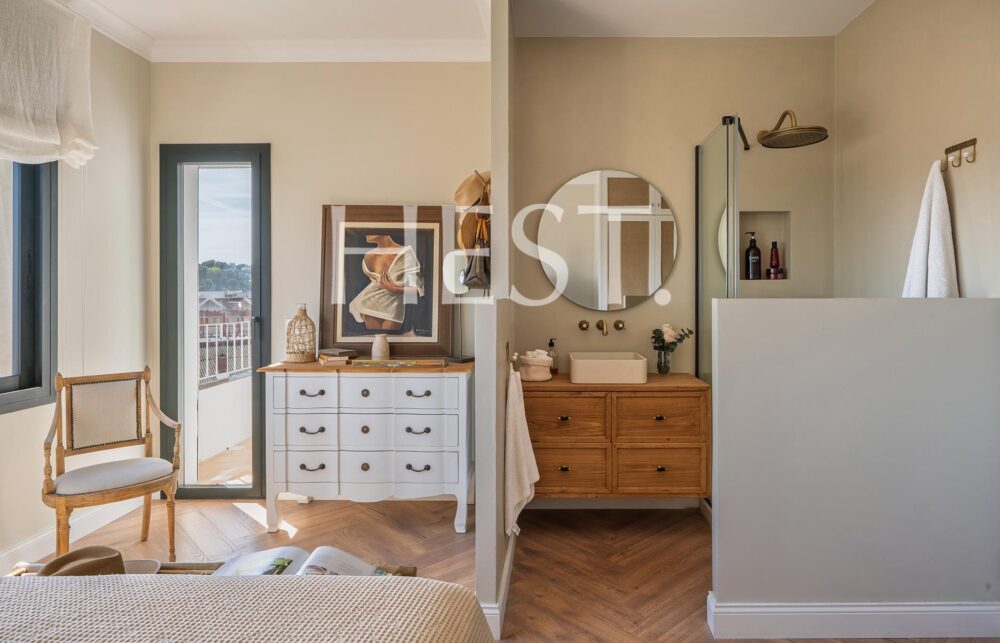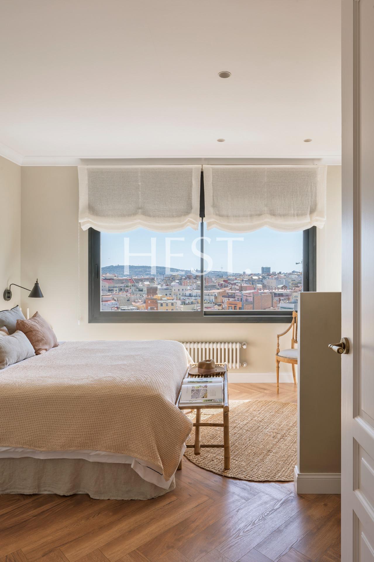 La suite principal es, sin duda, uno de los grandes privilegios de esta propiedad: desde ella se pueden contemplar impresionantes vistas panorámicas de Barcelona que alcanzan incluso el mar, además de contar con su propio baño privado.